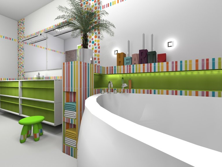 Új építésű családi házak esetén, és , ha a hely is engedi a gyerekeknek is ki tudunk alakítani egy saját fürdőszobát. Sok mindent kell figyelembe venni, ha pl. ilyen “csőszerű” a helyiség amibe tervezni kell. Ez a fürdő két nagyon szerencsés gyermeké lesz. Már most irigylem őket:) Kérés volt egy sarokkád, amely mellé elfér a központi szennyes-ledobó, aminek a teteje pl. alkalmas tárolásra, üldögélésre. Egy diszkrét WC elhelyezés, és mivel a hely engedi dupla mosdóval tettem még exrtábbá a helyet.