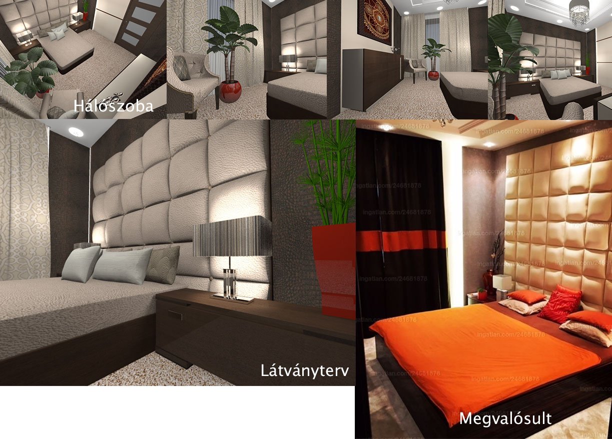 Hálószoba, fali panel, ágy és minden bútor, egyedire tervezett , méretre gyártott és csodaszép! A kialakult narancsos színvilág a tulajdonos menet közbeni kérése, melyet a teljes összhang miatt a függönyön is megjelenítettünk. Lámpák a lakásban https://www.lampabolt.com/
