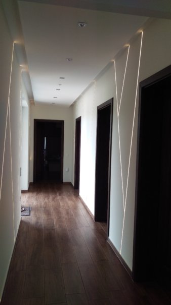 LED oldalfali és mennyezeti szalagfények , aszimmetrikus mintával.
